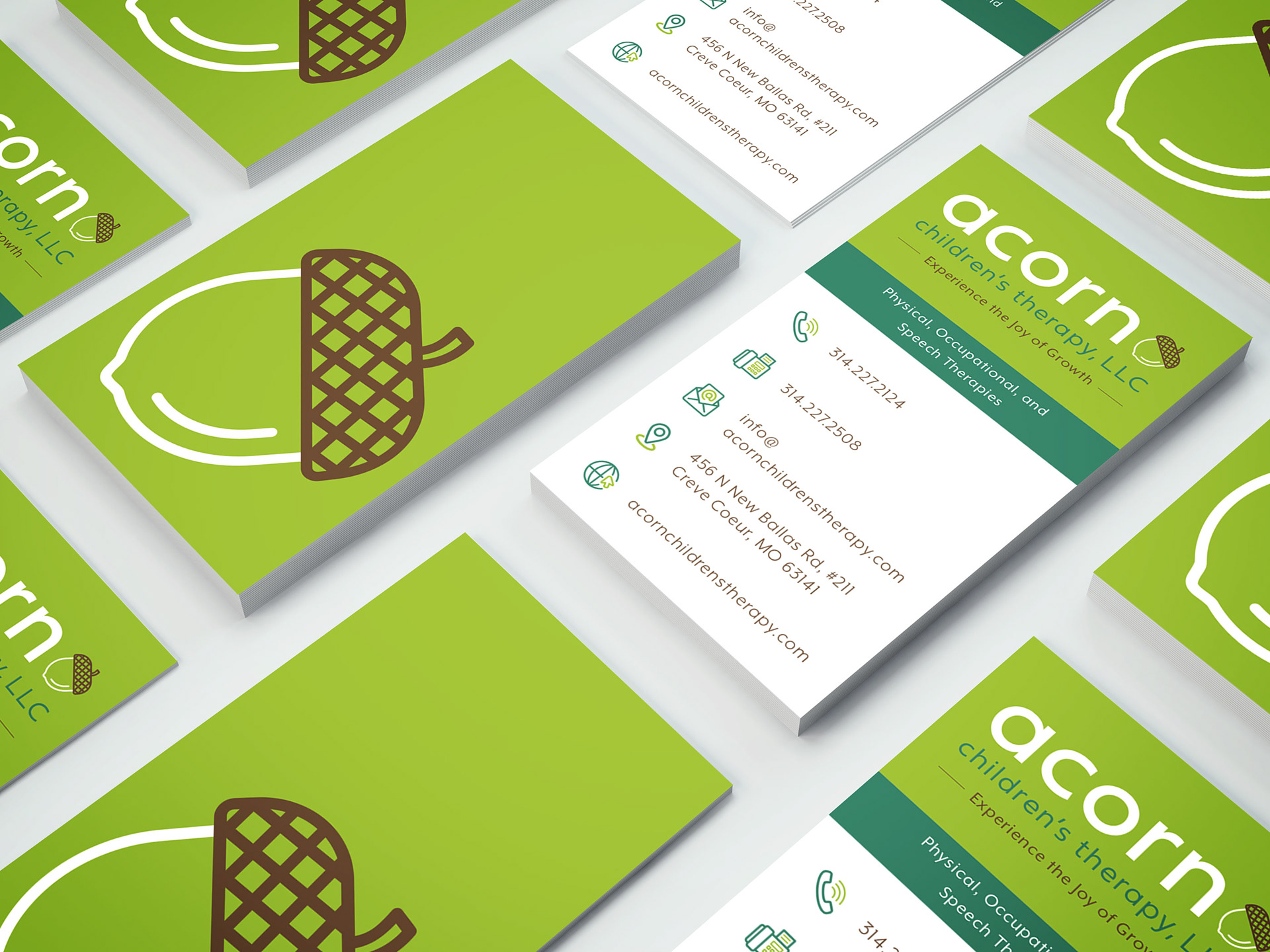I was approached by the owners of this soon-to-open children’s therapy clinic for help with branding, marketing, and a website. After some initial strategy work, I created a youthful but trustworthy logo that speaks to the purpose of the clinic while communicating to caregivers that Acorn’s providers are highly qualified. I developed an eye-catching color palette that starts with the natural colors of an acorn across its lifecycle and pulls in complimentary and exciting colors to evoke the fun that will be had while receiving therapy at Acorn. The palette was applied to business cards, marketing materials, and a responsive website that details the services provided. An on-going partnership with Acorn means that I get to continue to help build their brand across print and web as the business continues to grow.
