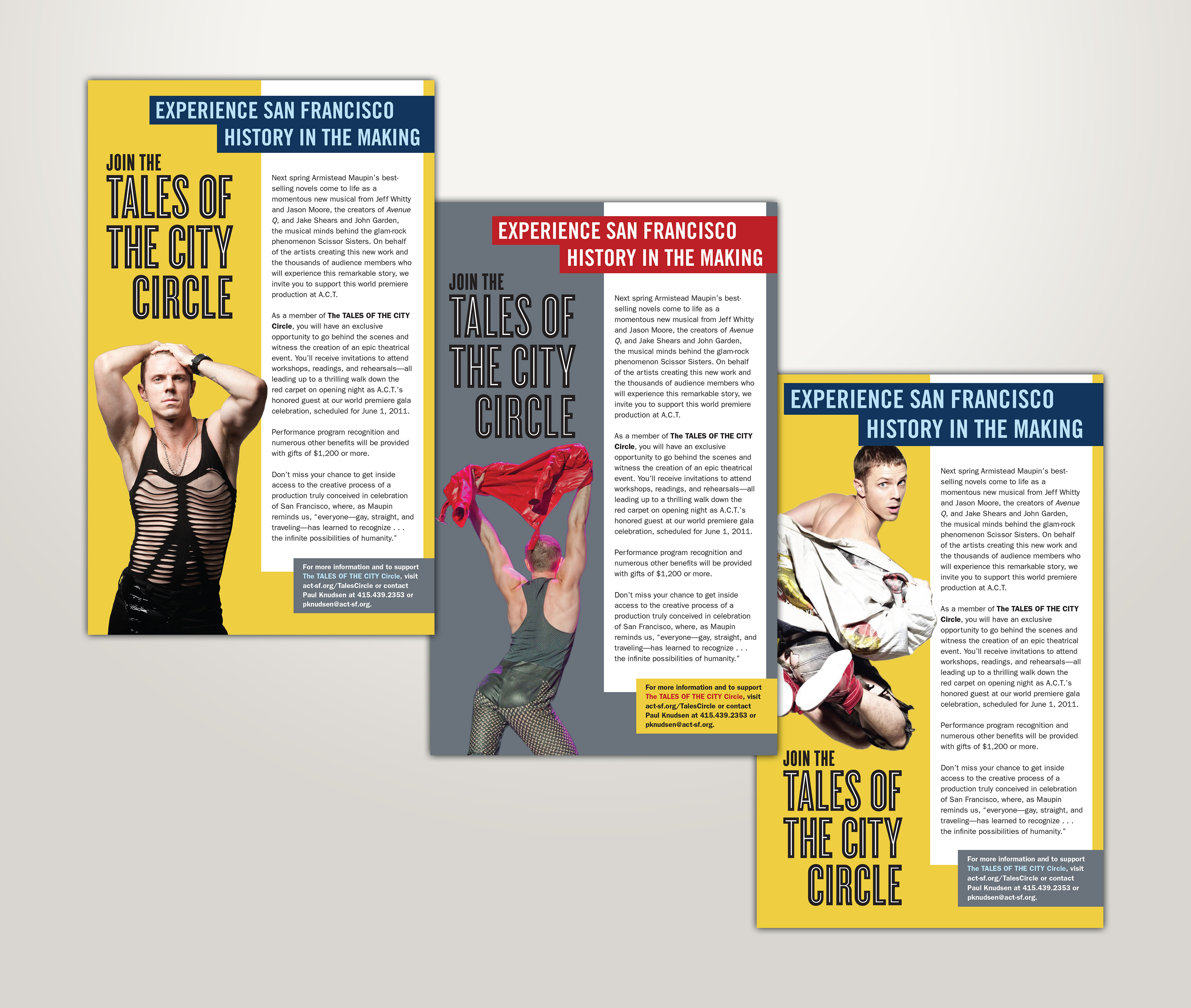 While living in San Francisco as a designer, I had the pleasure of freelancing for the American Conservatory Theater, or ACT. As I was a frequent patron of the plays performed there, it was especially wonderful to be involved in some of their design work.