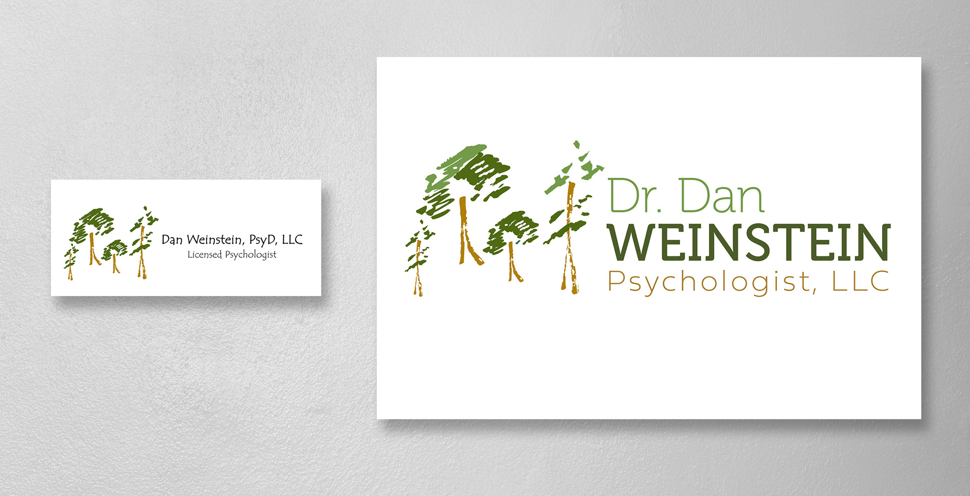 On the left is Dr. Weinstein's old logo. He really liked the trees and what they represented about the growth he could offer his clients, so I only edited the trees, adding more depth through color, and focused my attention on the typography. The old logo utilized a font that attempted to be organic but looked messy and unprofessional. The refreshed logo features two type families—one with uniform stroke widths and unique semi-serifs to match the organic nature of the tree imagery and the other a geometric sans serif to ground the logo in professionalism.